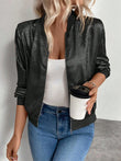 Autumn Lightweight Zip Up Long Sleeve Women's Jacket Glitter Zipper Woman Bomber Jackets Fashion Elegant Party Jackets Coats