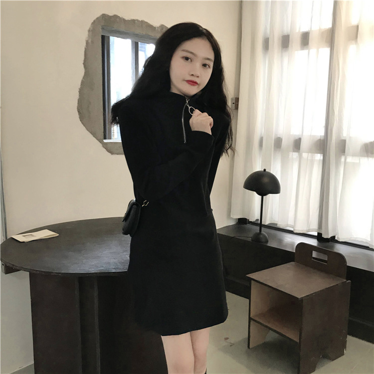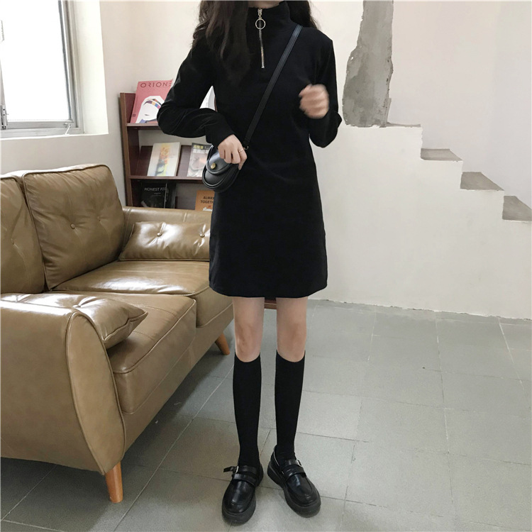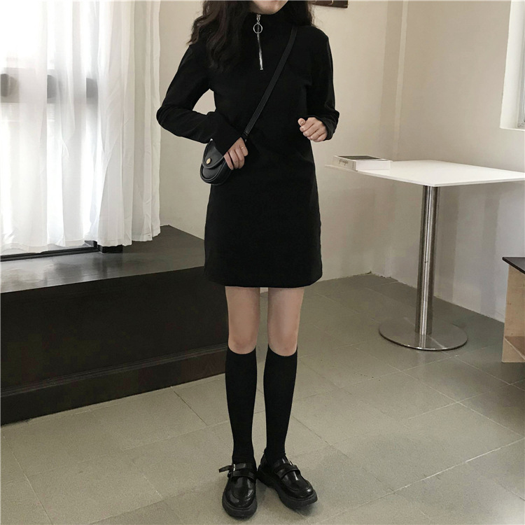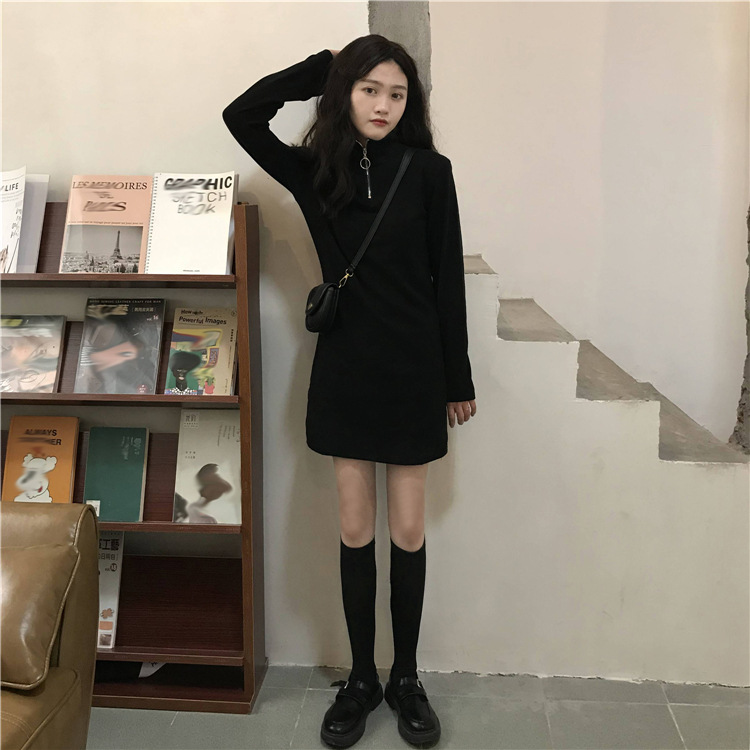 Black Dress Women Fall Winter New Korean Mid-Length Style