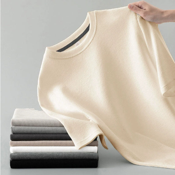 Knitted Short-sleeved T-shirt Men's All-match Loose Solid Color